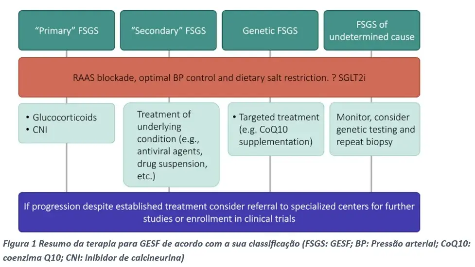 Para aqueles pacientes com GESF secundária, o tratamento é focado na condição subjacente.