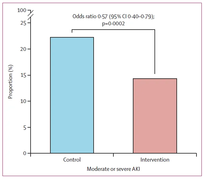 IRA moderada/grave em 72h: Intervenção 14,4% vs Controle: 22,3%