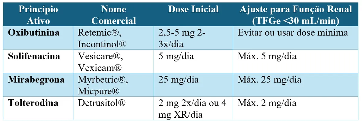* Mirabegrona (Myrbetric®, Micpure®) - Dose inicial: 25 mg/dia.