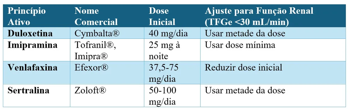 * Duloxetina (Cymbalta®) - Dose inicial: 40 mg/dia.